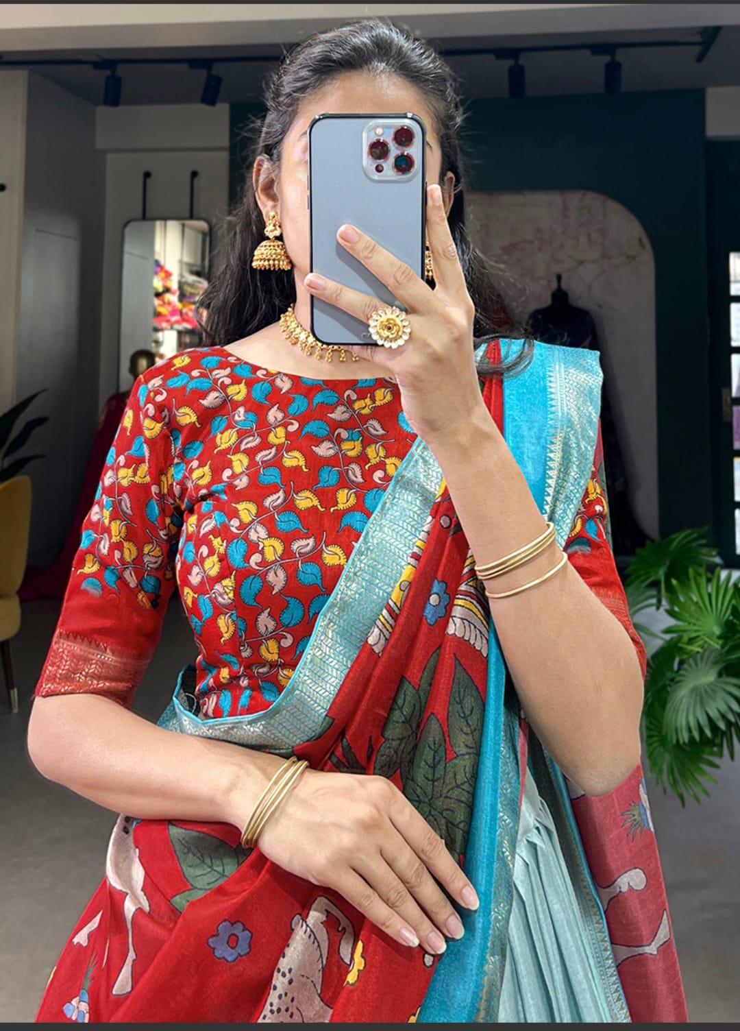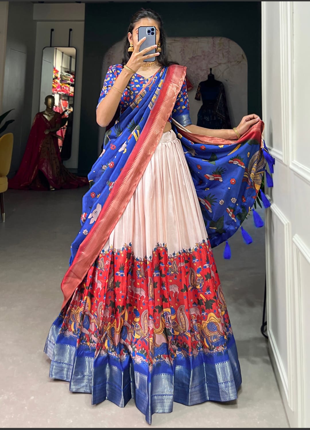 Dhola Silk lehenga choli kalamkari print with weaving border